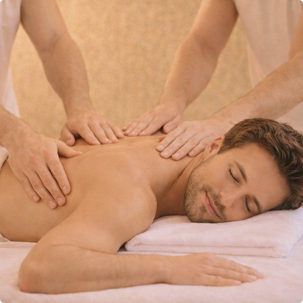 Čtyřruční tantrická masáž je ideální pro muže, kteří chtějí zažít přímý, tělesný a intenzivní prožitek, ve kterém se spojuje síla doteku, vnímání a vědomá práce s energií.