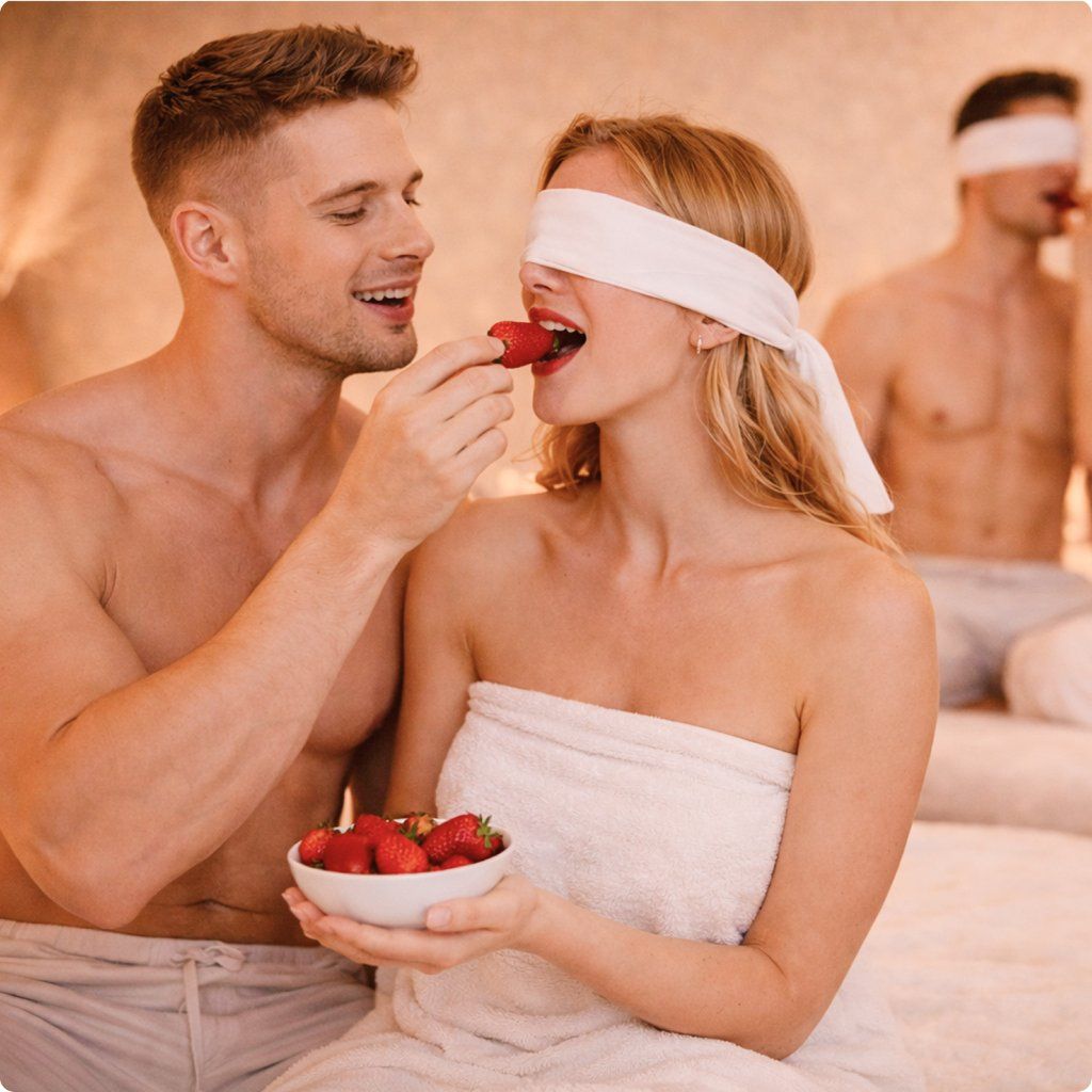 • smyslový obřad se zavázanýma očima – intenzivnější vnímání doteku, vůní i chutí, které zesilují prožitek